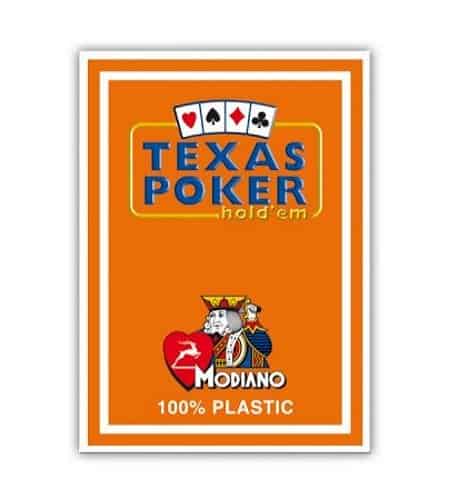 MODIANO KARTY DO POKERA TEXAS HOLD’EM JUMBO INDEX 100% PLASTIC KOLOR POMARAŃCZOWY