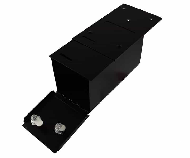 Jeden zamek zamyka dostęp do środka, drugi służy do zablokowania kasetki pod stołem i umożliwia szybkie jej wymontowanie.