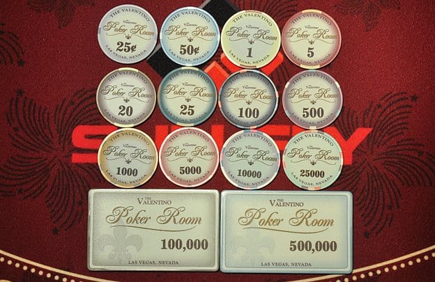 Nominały dostępne w serii: 1 / 2 / 5 / 20 / 25 / 100 / 500 / 1.000 / 5.000 / 10.000 / 25.000 / 100.000 / 500.000/ Dealer Button